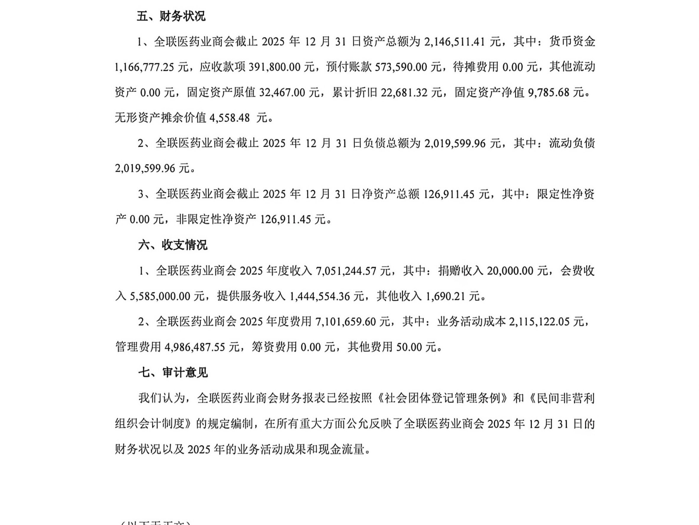 全联医药业商会2025年财务审计内容公示